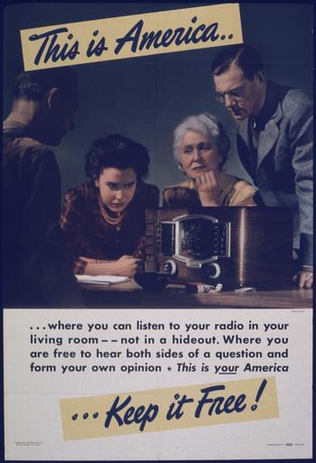 Keywords: THIS IS AMERICA... WHERE YOU CAN LISTEN TO YOUR RADIO IN YOUR LIVING ROOM. - NARA - 515773.jpg Scope and content General notes 515773 Local identifier 44-PA-2078 Office for Emergency Management Office of War Information Domestic Operations Branch Bureau of Special Services 03/09/1943 - 09/15/1945 Still Picture Records Section Special Media Archives Services Division NWCS-S National Archives at College Park 8601 Adelphi Road College Park MD 20740-6001 1941 - 1945 Record group Record Group 44 Records of the Office of Government Reports 1932 - 1947 Record group ARC 373 World War II Posters compiled 1942 - 1945 Series ARC 513498 File unit File unit ARC Variant control numbers NAIL Control Number NWDNS-44-PA-2078 Other versions <gallery> File THIS_IS_AMERICA _WHERE_YOU_CAN_LISTEN_TO_YOUR_RADIO_IN_YOUR_LIVING_ROOM _-_NARA_-_515773 tif tif File THIS_IS_AMERICA _WHERE_YOU_CAN_LISTEN_TO_YOUR_RADIO_IN_YOUR_LIVING_ROOM _-_NARA_-_515773 jpg jpg </gallery> NARA-cooperation PD-USGov This is America series of World War II posters from the United States |
