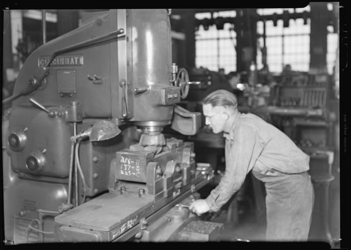 | Keywords: nara:arcid=518655 u.s. national archives usnationalarchives lewis hine lewishine millville new jersey newjersey the great depression thegreatdepression 1937 blackandwhite monochrome black and white Original Caption: Millville, New Jersey - Glass bottles. Mould shop Whitall Tatum Co. This skilled machinist is running a machine which faces off the mould and carves it to the shape of the bottle. Square iron blocks are hollowed out to the desired shape by this machine, March 1937 U.S. National Archives’ Local Identifier: 69-RP-425 Photographer: Hine, Lewis Subjects: The New Deal Tennessee Valley Authority Works Progress Administration Work Portraits The Great Depression Persistent URL: research.archives.gov/description/518655 Repository: Still Picture Records Section, Special Media Archives Services Division (NWCS-S), National Archives at College Park, 8601 Adelphi Road, College Park, MD, 20740-6001. For information about ordering reproductions of photographs held by the Still Picture Unit, visit: www.archives.gov/research/order/still-pictures.html Reproductions may be ordered via an independent vendor. NARA maintains a list of vendors at www.archives.gov/research/order/vendors-photos-maps-dc.html Access Restrictions: Unrestricted Use Restrictions: Unrestricted Original Caption: Millville, New Jersey - Glass bottles. Mould shop Whitall Tatum Co. This skilled machinist is running a machine which faces off the mould and carves it to the shape of the bottle. Square iron blocks are hollowed out to the desired shape by this machine, March 1937 U.S. National Archives’ Local Identifier: 69-RP-425 Photographer: Hine, Lewis Subjects: The New Deal Tennessee Valley Authority Works Progress Administration Work Portraits The Great Depression Persistent URL: research.archives.gov/description/518655 Repository: Still Picture Records Section, Special Media Archives Services Division (NWCS-S), National Archives at College Park, 8601 Adelphi Road, College Park, MD, 20740-6001. For information about ordering reproductions of photographs held by the Still Picture Unit, visit: www.archives.gov/research/order/still-pictures.html Reproductions may be ordered via an independent vendor. NARA maintains a list of vendors at www.archives.gov/research/order/vendors-photos-maps-dc.html Access Restrictions: Unrestricted Use Restrictions: Unrestricted |
