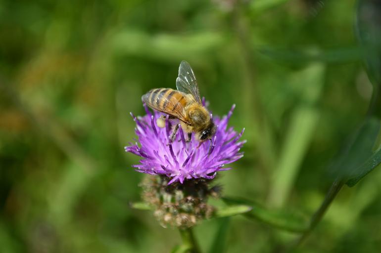 Keywords: thistle flower purple plant bee insect flora natural weed blossom thorn macro