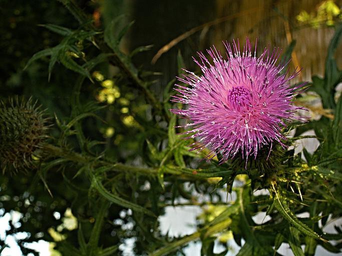 Keywords: thistle flower purple violet macro water water-level