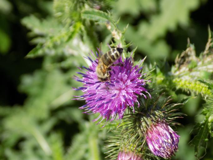 Keywords: thistle purple nature thistle flower spur bee