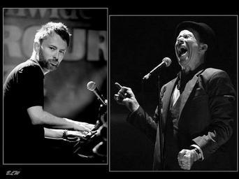 Keywords: blackandwhite monochrome black background photo border indoor musician performer people surreal black and white 2 in 1 2 in 1