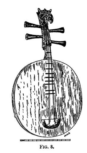 Keywords: THOM Chinese Moon-Guitar.jpg Fig 8 ” Chinese Moon-Guitar or Yueqin From en wikisource The History of Music 1907 Waldo Selden Pratt PD-Old The History of Music PD-Art