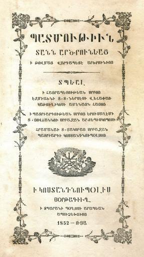 | Keywords: Thomas Artsruni. History of the House of Artsrunik.jpg ru Обложка издания Исто ии дома А ц уни 1852 года http //greenstone flib sci am/gsdl/cgi-bin/library cgi e d-01000-00---off-0haygirq--00-1----0-10-0---0---0direct-10---4------ -0-0l--11-en-50---20-help---00-3-1-00-0--4--0--0-0-11-10-0utfZz-8-00 a d c haygirq cl CL5 2 d HASH09a330e7ef4b8de284a00f author 1852 PD-old-100 Armenian historiography 19th century Armenian printing | ||||