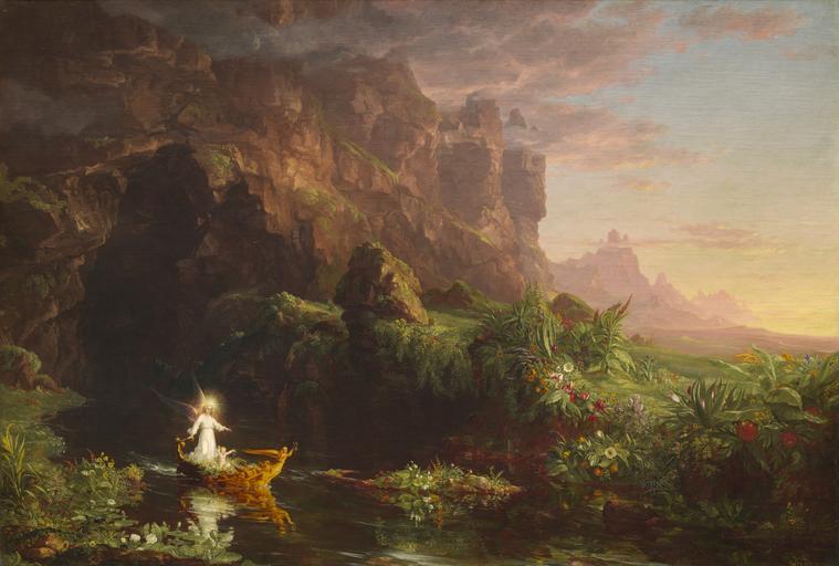| Keywords: Thomas Cole - The Voyage of Life Childhood, 1842 (National Gallery of Art).jpg Artwork creator Thomas Cole The Voyage of Life Childhood 1842 oil on canvas cm 134 3 195 3 Gallery 60 Institution National Gallery of Art 1971 16 1 lower left 1842 / T Cole / Rome object history between 1845 1846-05 purchase George K Shoenberger 1809-1892 Cincinnati Thomas Cole 1801-1848 after 1892-01-20 LangSwitch Erben estate of erven Shoenberger ProvenanceEvent 1908 purchase Ernst H Huenefeld Cincinnati ProvenanceEvent 1908 gift Bethesda Hospital and Deaconess Association of Methodist Church of Cincinnati ProvenanceEvent 1971-05-17 purchase LangSwitch die the la de National Gallery of Art Washington D C Hirschl Adler Galleries New York City Credit line Ailsa Mellon Bruce Fund 1 or 2 Picture taken at National Gallery of Art Washington D C USA<br/>3 http //www nga gov/fcgi-bin/tinfo_f object 52450 National Gallery of Art Washington DC Other versions The Voyage of Life four paintings second version Rome 1842 The first version of 1840 is in the http //www mwpai org/museum/collections/thevoyageoflife/ Munson-Williams-Proctor Arts Institute <gallery> File Thomas Cole - The Voyage of Life Childhood 1842 National Gallery of Art jpg Childhood File Thomas Cole - The Voyage of Life Youth 1842 National Gallery of Art jpg Youth File Thomas Cole - The Voyage of Life Manhood 1842 National Gallery of Art jpg Manhood File Thomas Cole - The Voyage of Life Old Age 1842 National Gallery of Art jpg Old Age </gallery> Assessments 1 The Voyage of Life PD-old-100 en Image Thomas Cole - The Voyage of Life Childhood 1842 National Gallery of Art jpg DEFAULTSORT Cole Thomas The Voyage of Life 1842 1 The Voyage of Life by Thomas Cole Paintings of babies Paintings uploaded by Chris Woodrich |