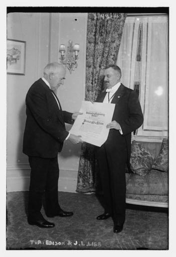 | Keywords: Thomas A. Edison and J.L. Lieb (LOC) (10609183614).jpg Bain News Service publisher Thomas A Edison and J L Lieb between ca 1915 and ca 1920 1 negative glass ; 5 x 7 in or smaller Notes Title from unverified data provided by the Bain News Service on the negatives or caption cards Forms part of George Grantham Bain Collection Library of Congress Format Glass negatives Rights Info No known restrictions on publication Repository Library of Congress Prints and Photographs Division Washington D C 20540 USA http //hdl loc gov/loc pnp/pp print hdl loc gov/loc pnp/pp print General information about the Bain Collection is available at http //hdl loc gov/loc pnp/pp ggbain hdl loc gov/loc pnp/pp ggbain Higher resolution image is available Persistent URL http //hdl loc gov/loc pnp/ggbain 21008 hdl loc gov/loc pnp/ggbain 21008 Call Number LC-B2- 3748-4 http //www flickr com/photos/library_of_congress/10609183614/ Thomas A Edison and J L Lieb LOC LOC-image ggbain 21008 Uploaded by palnatoke http //www flickr com/people/8623220 N02 The Library of Congress http //www loc gov/rr/print/195_copr html noknown The Library of Congress Flickr Commons PD-Bain File Upload Bot Magnus Manske 2013-11-06 Black and white photographs of men Standing people |
