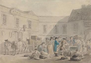 | Keywords: Thomas Rowlandson - Customs House at Boulogne - Google Art Project.jpg Inscribed in graphite lower center The Custom House at Boulogne ; in gray-black ink verso lower center the Custom House at Boulogne ; in gray-black ink verso lower right L 9 19 6 Inscription _Marks watermarks partial watermark - fleur-de-Lis similar to Shorter's fig 187 or fig 200 Inscription _Signed_and_Dated Not signed not dated Not on View Watercolor with pen and gray and black ink over graphite; verso graphite on medium moderately textured blued white laid paper dog animal horses animals men women travellers grand tours customs houses square open space hats luggage stagecoach genre subject special url_id QgHrzCgb4mM5aw PD-old-100-1923 1827 Drawings and watercolours by Thomas Rowlandson Google Art Project works by Thomas Rowlandson |