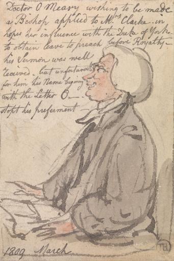 | Keywords: Thomas Rowlandson - Dr O'Meara Preaching - Google Art Project.jpg Barry Edward O'Meara In Britain a person with a D D is addressed as Dr Barry Edward O'Meara did not have a D D was not in holy orders did not preach and did not seek to be appointed bishop In 1809 he was serving as surgeon in the military where he would have been addressed as Mr O'Meara as surgeons are addressed in Britain even today London 1756 London 1827 Thomas male 2332358 Rowlandson British 1756 - 1827 /collection/yale-center-for-british-art/artwork/dr-omeara-preaching-thomas-rowlandson/2440119/ Thomas Rowlandson Artist /artist/thomas-rowlandson/4131603/ 4131603 /collection/yale-center-for-british-art/ Yale Center for British Art 2305845 http //britishart yale edu/ 2/23/2012 10 31 26 PM /collection/yale-center-for-british-art/artwork/dr-omeara-preaching-thomas-rowlandson/2440119/ 1809 1809 vicar O'Meara Barry Edward b in or after 1770 d 1836 papers robe wig portrait male Watercolor over graphite with pen and dark gray ink on medium slightly textured beige wove paper 105 2440119 False 1809 3/24/2012 9 53 30 PM YCBA/lido-TMS-5597 http //collections britishart yale edu/vufind/Record/1669901 Yale Center for British Art Paul Mellon Collection portrait 1800 1810 Italy Creation w73 x h105 cm 1809-03 False 0 666015625 Item dr-omeara-preaching-thomas-rowlandson Dr O'Meara Preaching d 73 en <nowiki>Inscribed in pen and gray ink upper center Doctor O Meary wishing to be made a Bishop applied to Mrs Clarke in hopes her influence with the Duke of York - to obtain leave to preach before Royalty - his Sermon was well received but unfortunately for him his Name beginning with the Letter O - stopt his preferment - in pen and gray ink lower left 1809 March in ink lower right TEL stamp in graphite verso center left Rowlandson ; in graphite verso center x6 in graphite verso lower leftl numbers and symbols; in ink verso collector's stamp of Paul Mellon</nowiki> Inscription _Signed_and_Dated Not signed not dated Not on view Watercolor over graphite with pen and dark gray ink on medium slightly textured beige wove paper vicar O'Meara Barry Edward b in or after 1770 d 1836 papers robe wig portrait male special url_id 6gGNGMae9E6yDw PD-old-100-1923 1827 Drawings and watercolours by Thomas Rowlandson Google Art Project works by Thomas Rowlandson 1809 drawings 1786 births 1836 deaths |