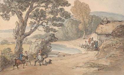 | Keywords: Thomas Rowlandson - Landscape with a Hunting Party - Google Art Project.jpg No inscription Inscription _Signed_and_Dated Not signed not dated Not on View Watercolor with pen and red-brown and gray ink over graphite with pen and gray ink and wash line on border on thick moderately textured beige wove support paper dogs animals horses animals men hunting water chimney architectural element gate cottage trees road landscape sporting art special url_id tAHbPuvgOngIWQ PD-old-100-1923 1827 Drawings and watercolours by Thomas Rowlandson Google Art Project works by Thomas Rowlandson Hunting by horse in art |