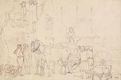 | Keywords: Thomas Rowlandson - Loading a Waggon - Google Art Project.jpg Inscribed in graphite lower right D28137 Inscription _Signed_and_Dated Not signed not dated Not on View Pen and red-brown and gray ink over graphite on medium slightly textured cream wove paper horses animals loading men chimney architectural element wheels house buildings carts wagons genre subject special url_id kQGfup5ignA5Pg PD-old-100-1923 1827 Drawings and watercolours by Thomas Rowlandson Google Art Project works by Thomas Rowlandson Horse-drawn wagons in art |