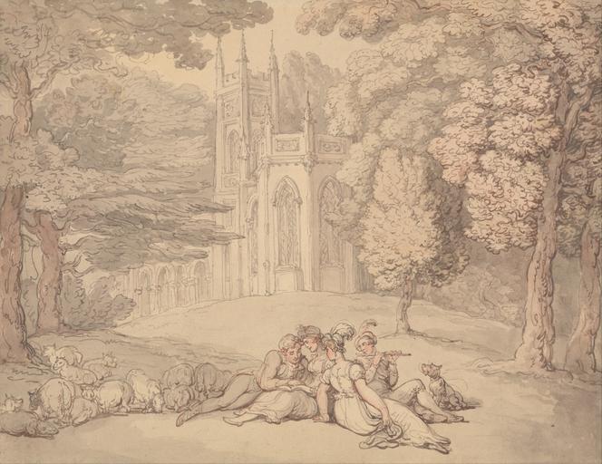 Keywords: Thomas Rowlandson - A Summer Idyll - Google Art Project.jpg between 1810 1815 watercolor London 1756 London 1827 Thomas male 2332358 Rowlandson British 1756 - 1827 /collection/yale-center-for-british-art/artwork/a-summer-idyll-thomas-rowlandson/2427754/ Thomas Rowlandson Artist /artist/thomas-rowlandson/4131603/ 4131603 /collection/yale-center-for-british-art/ Yale Center for British Art 2305845 http //britishart yale edu/ 2/24/2012 12 07 03 AM /collection/yale-center-for-british-art/artwork/a-summer-idyll-thomas-rowlandson/2427754/ 1810 between 1810 and 1815 summer resting dog animal sitting sheep youth men women reading building feathers trees flute genre subject landscape Watercolor with pen and brown red and gray ink over graphite on thick smooth beige wove paper 213 2427754 False 1815 3/25/2012 7 28 05 PM YCBA/lido-TMS-6498 http //collections britishart yale edu/vufind/Record/1670725 Yale Center for British Art Paul Mellon Collection painting 1810 1820 Italy Creation w278 x h213 cm between 1810 and 1815 False 1 29620253164557 Item a-summer-idyll-thomas-rowlandson A Summer Idyll a 278 <nowiki>Inscribed in graphite verso upper left The College Green ; in graphite verso lower right No 6 ; in graphite verso upper right u underline 41 underline 216 6/4- </nowiki> Inscription _Marks watermarks -o- Inscription _Signed_and_Dated Not signed not dated Not on view Watercolor with pen and brown red and gray ink over graphite on thick smooth beige wove paper summer resting dog animal sitting sheep youth men women reading building feathers trees flute genre subject landscape special url_id ngG8fukyKxxWOg PD-old-100-1923 1827 Drawings and watercolours by Thomas Rowlandson Google Art Project works by Thomas Rowlandson Group portraits with 4 persons 19th-century group portraits 1810s drawings Drawings of sheep |