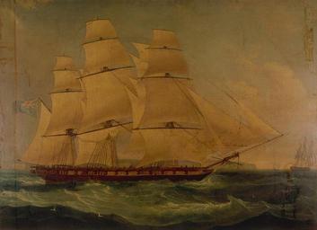 | Keywords: Thomas Whitcombe - The East Indiaman "Providence".jpg Artwork creator Thomas Whitcombe A portrait of the East Indiaman ˜Providence' shown in full sail broadside-on The white cliffs of the English coast are visible in the distance and she is accompanied by other vessels The ˜Providence ™ was constructed in 1807 but did not enter the service of the East India Company until March 1816 The vessel undertook a single voyage to St Helena and China under the command of Captain Andrew Timbrell Mason returning to England in August 1817 early other date century 19 oil canvas cm 76 2 104 1 National Maritime Museum object history credit line National Maritime Museum Greenwich London accession number BHC3566 http //collections nmm ac uk/collections/objects/15039 html collections nmm ac uk PD-old-100 Thomas Whitcombe Paintings in the National Maritime Museum London Providence ship 1816 19th-century sailing ships in paintings 1801-1850 paintings |