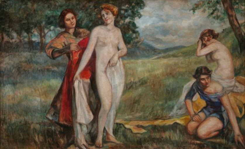 Keywords: Thorma After Bath A.jpg Artwork Creator János Thorma After the Bath Oil on canvas Size cm 118 74 Private collection object history credit line bottom right Thorma accession number http //axioart com/ axioart com http //axioart com/index php op live_item id 473250 Info http //axioart com/images/live_images/original/2460/139 jpg Pic PD-old-70 Paintings by János Thorma in private collections Bathing females in art