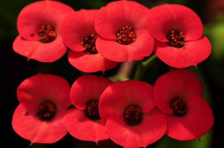 Keywords: thorn blossom bloom apricot macro close euphorbia plant desert flower red flowers pink red poisonous euphorbia milii