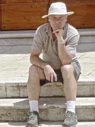 Keywords: thoughtful pensive adult person sitting portrait thinking male expression casual