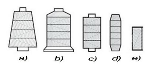 | Keywords: Thread bobbins.jpg en Various forms of sewing thread bobbins a Cone b Bottle bobbin c Cylindrical bobbin d Bobbin for embroidery machine e Bottom thread bobbin for lockstitch sewing machine hu Különböző varrócérna-csévék a Kúpos cséve b talpas cséve c hengeres cséve d hímzőgéphez való cséve e alsófonal-cséve huroköltésű varrógéphez own Elkagye 2009-01-19 SVG Bobbins |