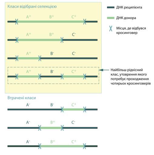 | Keywords: Three factor cotransduction.svg uk Класи т ансдуктантів що утво юються під час пе енесення т ьох генів Відзначено ті класи які можна відіб ати п овівши селекцію по ма ке у A 2011-12-15 own Zlir'a cc-zero Uploaded with UploadWizard Genetics Diagrams in Ukrainian |