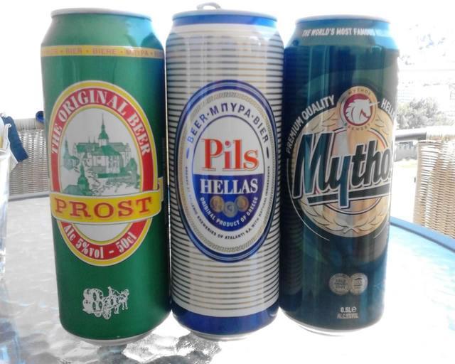 Keywords: Three Greek beers.jpg Three Greek Beers own 2014 Loco2014 Beers of Greece Beer cans Mythos beer Cc-zero
