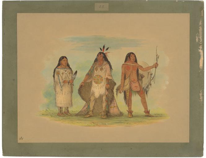 | Keywords: Three Minatarree Indians C16940.jpg artwork creator George Catlin American 1796 - 1872 Three Minatarree Indians Q20188601 1861 oil on card mounted on paperboard overall 45 5 x 60 3 cm 17 15/16 x 23 3/4 in Paul Mellon Collection accession number 1965 16 77 http //www nga gov/content/ngaweb/Collection/art-object-page 50385 html institution National Gallery of Art PD-old George Catlin Collections of the National Gallery of Art Uploaded with VicuñaUploader Bison clothing in art Fur clothing of native people of North America Minatarree Fur fashion in 1965 |