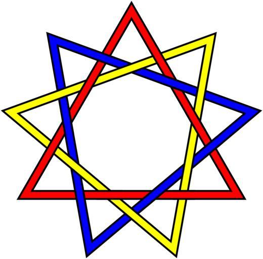 Keywords: Three-triang-18crossings-Brunnian.svg A three-component Brunnian link which is not the Borromean rings “ no two triangles are directly interlinked but all three are collectively interlinked and cutting any triangle will free the other two For another three-component Brunnian link which is not the same as the Borromean rings see Image Brunnian-3-not-Borromean png A version of this figure is found in the sixth century Marundheeswarar Temple in Thiruvanmayur South Chennai India associated with the goddess Tripurasundari see external page http //www liv ac uk/ 7Espmr02/rings/maths html The three interlaced triangles are a minor symbol in some New Age / occultist / neo-pagan circles presumably with a different preferred color scheme and for such purposes it is occasionally called the star of the muses For a revised version of this image presumably more artistically suited to such symbolic uses see Image Interlaced-Triangles quasi-Arabesque Brunnian-link svg <gallery>File Interlaced-Triangles quasi-Arabesque Brunnian-link svg File Interlaced-Triangles Brunnian-link alternate svg</gallery> This image is an SVG conversion of Image Three-triang-18crossings-Brunnian png generated by means of the following PostScript code <pre> 300 396 translate 2 5 dup scale 5 setlinewidth/x 7500 sqrt -50 moveto 30000 sqrt neg 0 rlineto 7500 sqrt 150 rlineto closepath y def/y gsave 8 setlinewidth 0 setgray stroke grestore stroke def 1 0 0 setrgbcolor x gsave 0 0 1 setrgbcolor 40 rotate x 1 1 0 setrgbcolor 40 rotate x grestore/z gsave 8 setlinewidth 0 setgray 7500 sqrt 35 sub -50 moveto -18 0 rlineto stroke 7500 sqrt 94 sub -50 moveto -21 0 rlineto stroke -69 1025404 -19 6891109 moveto 9 243 sqrt rlineto stroke -39 6025404 31 40638796 moveto 10 5 330 75 sqrt rlineto stroke 17 5 69 6891109 moveto 9 243 sqrt neg rlineto stroke 47 18 59361204 moveto 10 5 330 75 sqrt neg rlineto stroke grestore /q 75 sqrt def/r 3 sqrt def 7500 sqrt 34 sub -50 moveto -20 0 rlineto stroke 7500 sqrt 93 sub -50 moveto -23 0 rlineto stroke -69 1025404 5 sub -19 6891109 q sub moveto 10 243 sqrt r add rlineto stroke -39 6025404 5 sub 31 40638796 q sub moveto 11 5 330 75 sqrt r add rlineto stroke 17 69 6891109 q add moveto 10 243 sqrt r add neg rlineto stroke 46 5 18 59361204 q add moveto 11 5 330 75 sqrt r add neg rlineto stroke def 1 0 0 setrgbcolor z 0 0 1 setrgbcolor 40 rotate z showpage EOF</pre> 2006 Initial upload by Amada44 based on PNG and PostScript vector source by AnonMoos AnonMoos 3 component links Equilateral triangles Decorative knots Brunnian links Nine pointed stars Color permutation of order 3 Blue red yellow Chiral images with rotational symmetry 3-fold rotational symmetry Knots and links on transparent background Alternating knots and links |