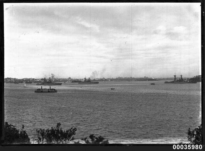 Keywords: hood collection hoodcollection 35980 samuel j hood collection samueljhoodcollection american fleet visit americanfleetvisit great white fleet greatwhitefleet american navy americannavy admiral samuel shelburne robison admiralsamuelshelburnerobison admiral ss robison admiralssrobison united states navy unitedstatesnavy blackandwhite photo border outdoor monochrome sky black and white On 23 July 1925, Sydney hosted eight of the US Navy Battle Fleet's largest ships, including USS CALIFORNIA, USS COLORADO, USS TENNESSEE, USS MARYLAND, USS WEST VIRGINIA, USS NEW MEXICO, USS MISSISSIPPI and USS IDAHO. The fleet departed for New Zealand on 6 August. This photo is part of the Australian National Maritime Museum’s Samuel J. Hood Studio collection. Sam Hood (1872-1953) was a Sydney photographer with a passion for ships. His 60-year career spanned the romantic age of sail and two world wars. The photos in the collection were taken mainly in Sydney and Newcastle during the first half of the 20th century. The ANMM undertakes research and accepts public comments that enhance the information we hold about images in our collection. This record has been updated accordingly. Photographer: Samuel J. Hood Studio Collection Object no. 00035980 On 23 July 1925, Sydney hosted eight of the US Navy Battle Fleet's largest ships, including USS CALIFORNIA, USS COLORADO, USS TENNESSEE, USS MARYLAND, USS WEST VIRGINIA, USS NEW MEXICO, USS MISSISSIPPI and USS IDAHO. The fleet departed for New Zealand on 6 August. This photo is part of the Australian National Maritime Museum’s Samuel J. Hood Studio collection. Sam Hood (1872-1953) was a Sydney photographer with a passion for ships. His 60-year career spanned the romantic age of sail and two world wars. The photos in the collection were taken mainly in Sydney and Newcastle during the first half of the 20th century. The ANMM undertakes research and accepts public comments that enhance the information we hold about images in our collection. This record has been updated accordingly. Photographer: Samuel J. Hood Studio Collection Object no. 00035980