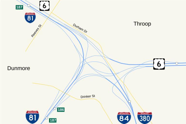 MAKE A MEME View Large Image Throop-Dunmore Interchange.svg Inkscape Interchange in Throop and Dunmore Pennsylvania consisting of I-81 I-84 I-380 and US 6 Traced from the United States Geological Survey Own 2007-11-04 JohnnyAlbert10 Road maps of Pennsylvania Road ...