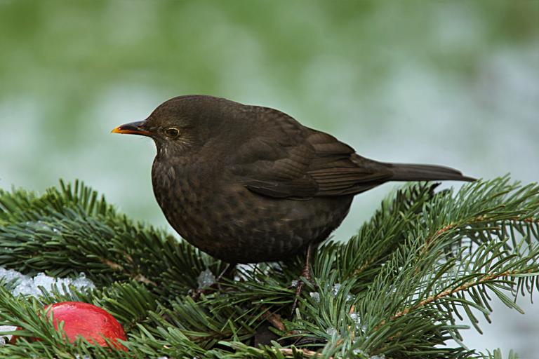 Keywords: throttle turdus philomelos bird winter garden foraging