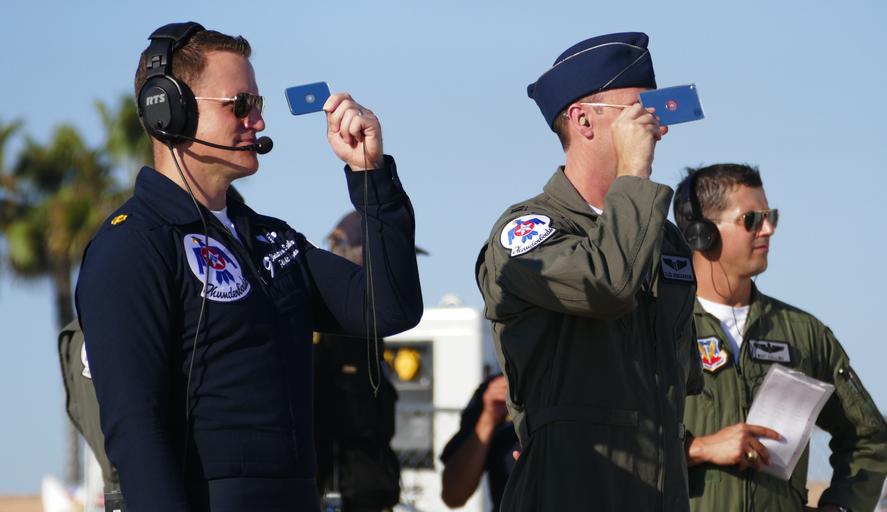 | Keywords: usaf usaf thunderbirds usafthunderbirds thunderbird 9 thunderbird9 signal mirror signalmirror mil-m-18371e milm18371e acr hot shot™ signal mirror acrhotshot™signalmirror outdoor Here the current and future USAF Thunderbird 9's are signaling right with their signal mirrors. Left: Maj. (Dr.) Christopher Scheibler, Thunderbird 9 for 2015-2016, with a USAF issue 2"x3" glass MIL-M-18371E signal mirror. Right: Capt. (Dr.) William "Glen" Goncharow, Thunderbird 9 for 2017-2018, with a 2.75"x4.25" polycarbonate ACR Hot Shot™ signal mirror. During airshows, traditionally Thunderbird 9 marks show center for Thunderbird 1 with a flash of sunlight from their signal mirror. Photo taken at Huntington Beach, CA, at the 10/21/2016 rehearsal session for the Breitling Huntington Beach Airshow. Here the current and future USAF Thunderbird 9's are signaling right with their signal mirrors. Left: Maj. (Dr.) Christopher Scheibler, Thunderbird 9 for 2015-2016, with a USAF issue 2"x3" glass MIL-M-18371E signal mirror. Right: Capt. (Dr.) William "Glen" Goncharow, Thunderbird 9 for 2017-2018, with a 2.75"x4.25" polycarbonate ACR Hot Shot™ signal mirror. During airshows, traditionally Thunderbird 9 marks show center for Thunderbird 1 with a flash of sunlight from their signal mirror. Photo taken at Huntington Beach, CA, at the 10/21/2016 rehearsal session for the Breitling Huntington Beach Airshow. |
