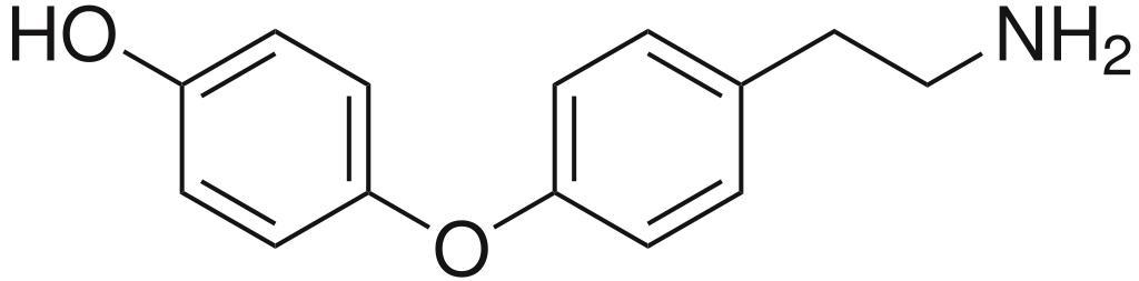 Keywords: Thyronamine.svg en 2D structure of trace amine called thyronamine Own Harbin 2009-01-11 Phenethylamines Hormones of the thyroid gland Phenoxybenzenes Hydroxyphenol ethers
