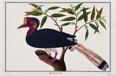 | Keywords: Tibang Muntooa (William Farquhar Collection, 1819–1823).jpg  author anonymous Chinese artist A w watercolour drawing of the Helmeted Hornbill Rhinoplax vigil; known in Malay language Malay as burung enggang tebang The bird's tail has been depicted longer than it is on actual specimens It is now scarce in Malaysia and extinct in Singapore The drawing is one of 477 natural history drawings of plants and animals of Malacca and Singapore commissioned by William Farquhar between 1819 1823 watercolor paper cm 38 5 55 Institution National Museum of Singapore Goh Seng Choo Gallery <br> Singapore accession number Royal Asiatic Society RAS016 215; National Museum of Singapore SHM1995 3202 object history 17 June 1826 Donated in eight volumes by William Farquhar to the Museum of the Royal Asiatic Society of Great Britain and Ireland in London 1937 Six volumes lent by the Society to the Library of the British Museum Natural History now the Library of the Natural History Museum ; two volumes of botanical drawings retained in the Society's library 1991 Volumes lent to the Museum returned to the Society for valuation 20 October 1993 Sold by the Society at a Sotheby's auction in London to Goh Geok Khim for Singapore dollar S 3 million 1995 Donated by Goh to the Singapore History Museum now the National Museum of Singapore See Natural History Drawings below pp 32 “33 credit line N<sup>o</sup> 1 / Tibang Muntooa Watermark Russell Co 1810 Drawings of Birds from Malacca no 2 in the Royal Asiatic Society's collection cite book The William Farquhar Collection of Natural History Drawings Singapore Goh Geok Khim 1999 1 116 plate 22 978-981-3065-82-6 Editions Didier Millet ; National Museum of Singapore 2010 231 978-981-4217-69-9 Caption Helmeted Hornbill / Burung Enggang Tebang / Buceros vigil http //sg lifestyleasia com/var/lifestyleasia/storage/images/media/images/william-farquhar-collection-of-natural-history-drawings/3792474-1-eng-GB/william-farquhar-collection-of-natural-history-drawings_cover_655x380 jpg other versions PD-Art-100 Rhinoplax vigil William Farquhar Collection of Natural History Drawings |