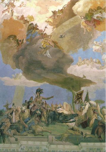 | Keywords: Tiepolo, Giovanni - Staircase painting in the Würzburg Residence, America.jpg Artwork Creator Giovanni Battista Tiepolo Die vier Kontinente Amerika 1752-1753 oil Fresco Dimensions Residenz Treppenhaus own scan from postcard Other versions PD-old-100 ImageNote 1 410 1096 143 125 1344 1920 2 200px ImageNoteEnd 1 Treppenhaus Residenz Würzburg Deckenfresco America Paintings of Native Americans Mythological figures on clouds Frescos of angels in Germany Würzburg Pointing in art Details of frescos Scans by Mattes Work by Mattes 2010 Stereotypes of indigenous peoples of the Americas Scanned with HP Photosmart C5200 |