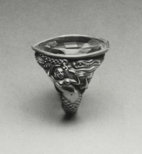 Keywords: Tiffany and Company - Nautical Ring - Walters 571123.jpg A large aquamarine with its table engraved to show a bell and a compass is set in a gold ring The shoulders are in the form of mermaids holding anchors whose tails intertwine to complete the shank Large fish accompany the mermaids The ring was shown at the World's Columbian Exposition in Chicago in 1893 and then bought by Henry Walters an enthusiastic yachtsman 1893 gold aquamarine cm 1 5 w accession number 57 1123 5355 Henry Walters Baltimore 1893 mode of acquisition unknown Walters Art Museum Henry Walters Acquired by Henry Walters 1893 Objects of Adornment Five Thousand Years of Jewelry from the Walters Art Gallery Baltimore Cooper-Hewitt National Design Museum New York; Chrysler Museum of Art Norfolk; Carnegie Museum of Art Pittsburgh; San Antonio Museum of Art San Antonio; Philbrook Museum of Art Tulsa; Honolulu Academy of Arts Honolulu; New Orleans Museum of Art New Orleans; Milwaukee Art Museum Milwaukee; Minneapolis Institute of Arts Minneapolis; Toledo Museum of Art Toledo; The John and Mable Ringling Museum of Art Sarasota 1984-1987 Jewelry from the Walters Art Museum and the Zucker Family Collection The Walters Art Gallery Baltimore 1987 Bedazzled 5 000 Years of Jewelry from the Walters Art Museum Frist Center for the Visual Arts Nashville; The John and Mable Ringling Museum of Art Sarasota; The Walters Art Museum Baltimore 2006-2009 Bedazzled 5 000 Years of Jewelry El Paso Museum of Art El Paso 2010 Jewelry - Ancient to Modern The Walters Art Gallery Baltimore 1979-1980 place of origin New York New York USA Walters Art Museum license Jewellery in the Walters Art Museum Tiffany Co Media contributed by the Walters Art Museum needs category review Gold rings |