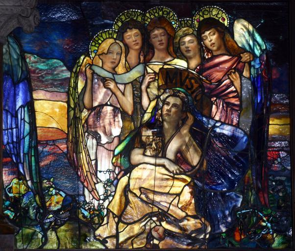 | Keywords: Tiffany Education (right).JPG 41 3084 -72 9296 type landmark The right third of Louis Comfort Tiffany's Education stained glass window at Yale University Personifications of music Stained glass windows at Yale University Tiffany stained glass windows 1890 stained glass windows Art Nouveau stained glass windows in the United States |