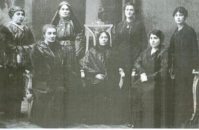 | Keywords: Tiflis Muslim Women's Benevolent Society.jpg en Azeri women of the Caucasus Muslim Benevolent Society Tiflis 1910 From left to right Salatyn Ahmadova Govhar Gajar Nisa Novruzova Saadat Gayibova Kamila Subhangulova Najabat Zeynalova Sara Atamalybeyova ka კავკასიის მუსულმა ური საქველმ ქმედ საზ გად ებას აზერბაიჯა ელ ქალთა თბილისი 1910 მარცხ იდა მარჯვ ივ სალათი აჰმედ ვა გ ვჰარ გაჯარი ისა ვრუზ ვა საადეთ გაიბ ვა ქამილა სუბჰა გულ ვა აჯაბეთ ზეი ალ ვა სარა ათამალიბექ ვა az Qafqaz Müsəlman Xeyriyyə Cəmiyyətinin üzvü olan azərbaycanlı qadınlar Tiflis 1910 Soldan sağa Salatın Əhmədova Gövhər Qacar Nisə Novruzova Səadət Qayıbova Kamilə Sübhanqulova Nəcabət Zeynalova Sara Atamalıbəyova 1910 Sabir Ganjali Women Beauty and Sanctity Azerbaijan Publishing Baku 2001 author Custom license marker 2013 07 20 PD-RusEmpire Uploaded with UploadWizard Azerbaijani people |