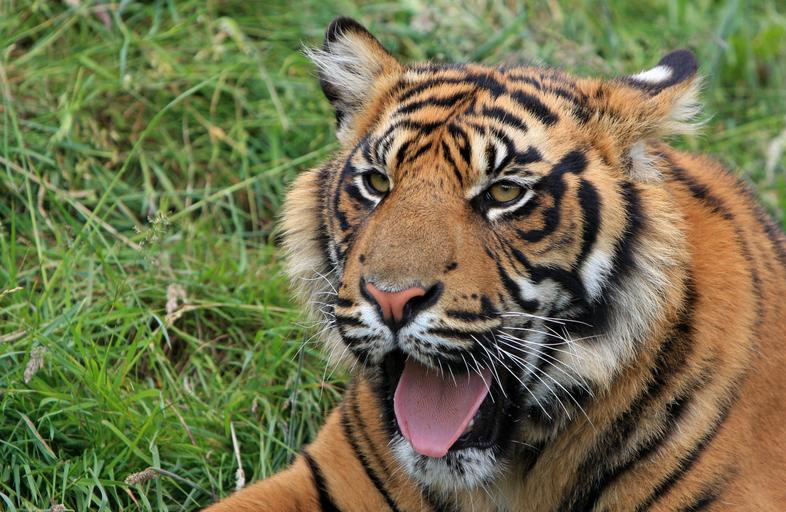 Keywords: tiger cub tiger cub sumatran cute beautiful animal close-up wild wildlife photo image yawning