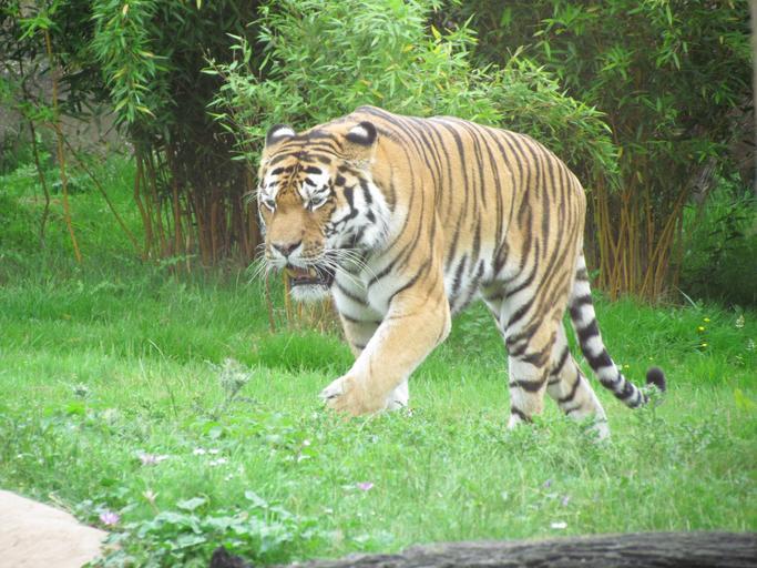 Keywords: tiger grass walking cat wild wildlife predator carnivore zoo striped jungle
