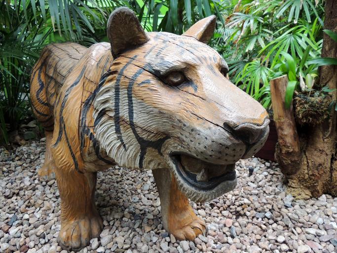 Keywords: tiger pebble jungle trees animal big cat tropics landscape forest nature statue fig wood carved carving