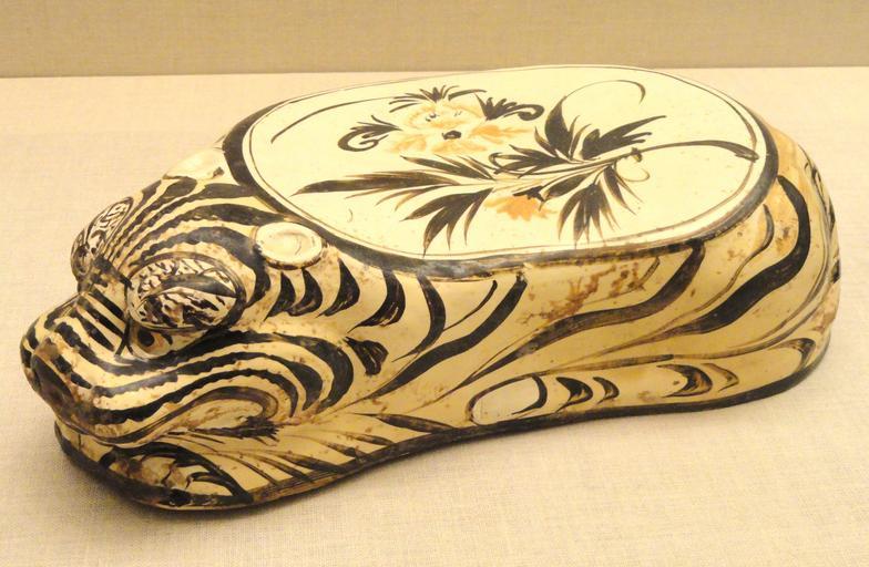 | Keywords: Tiger-Shaped Pillow with Bean-Shaped Headrest, Jin Dynasty, China, cizhou-type ware, earthenware with glaze and iron-brown peony scroll - Art Institute of Chicago - DSC00283.JPG Exhibit in the Art Institute of Chicago Chicago Illinois USA This artwork is in the public domain because the artist died more than 70 years ago Photography was permitted in the museum without restriction Daderot 2012-10-10 16 41 56 Daderot cc0 cc0 Ceramic pillows in the Art Institute of Chicago | ||||