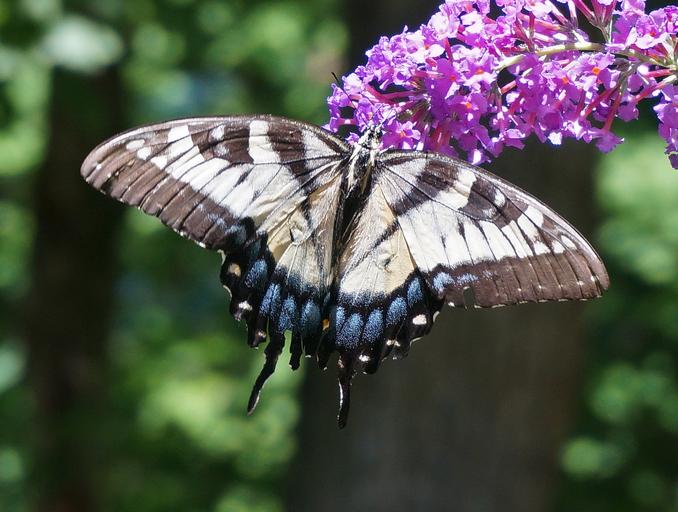 Keywords: tiger swallowtail butterfly bush butterfly insect animal flower blossom bloom garden shrub nature winged yellow purple eastern natural flora fauna wild
