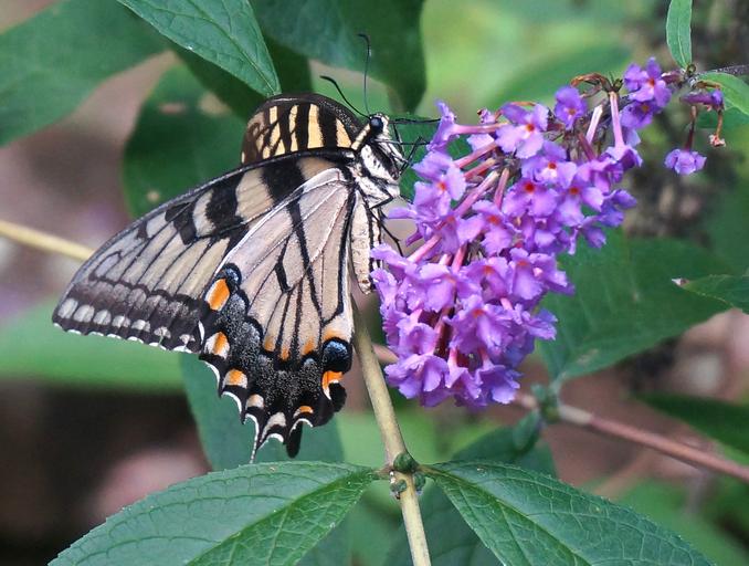 Keywords: tiger swallowtail butterfly bush butterfly insect animal flower blossom bloom garden shrub nature winged yellow purple eastern natural flora fauna wild