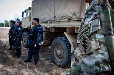 | Keywords: TIGRES Eglin AFB 383941.jpg en A Green Beret from the 7th Special Forces Group Airborne observes Honduran Tigres as they conduct an after-action review of their operation on Eglin Air Force Base Feb 27 2015 2015-02-27 http //www army mil/article/143821/Special_Forces_Soldiers_train_Honduran_force/ Capt Thomas Cieslak other versions PD-USGov TIGRES 7th Special Forces Group United States Eglin Air Force Base Uploaded with UploadWizard | ||||