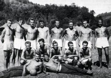 MAKE A MEME View Large Image Tim 1950.jpg sr-ec Екипа из 1950 године Стоје са лева на десно Богојевић п едседник спо тског д уштва Симоновић Иванишевић Јовановић   ...