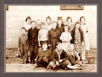 | Keywords: flinton school tin school tinschool class classmates teacher anne mcnamara annemcnamara may lyons maylyons aletha jerome alethajerome iva sedore ivasedore margaret baskey margaretbaskey annie lessard annielessard douglas alkenbrack douglasalkenbrack tom hassler tomhassler tom hasler tomhasler odie yanch odieyanch veronica yanch veronicayanch douglas bouchard douglasbouchard eddie lessard eddielessard eugene bouchard eugenebouchard 1945 photo border A great photo with most of the names written on the back of the photo.  Back Row (L-R): Anne McNamara (teacher), May Lyons, Aletha Jerome, Iva Sedore, Margaret Baskey, Annie Lessard  Middle Row (L-R): Douglas Alkenbrack, Tom Hassler, Odie Yanch, ??? Sedore, Veronica Yanch, ???Andrews  Front Row Seated: Douglas Bouchard, Eddie Lessard, Eugene Bouchard  Flinton's 'Tin School' sadly burned down in l945 from a fire caused by a torch used to thaw frozen pipes.  To learn more about the Tin School history visit: pioneer.mazinaw.on.ca/news/2015/CDHS_Newsletter_April%202... A great photo with most of the names written on the back of the photo.  Back Row (L-R): Anne McNamara (teacher), May Lyons, Aletha Jerome, Iva Sedore, Margaret Baskey, Annie Lessard  Middle Row (L-R): Douglas Alkenbrack, Tom Hassler, Odie Yanch, ??? Sedore, Veronica Yanch, ???Andrews  Front Row Seated: Douglas Bouchard, Eddie Lessard, Eugene Bouchard  Flinton's 'Tin School' sadly burned down in l945 from a fire caused by a torch used to thaw frozen pipes.  To learn more about the Tin School history visit: pioneer.mazinaw.on.ca/news/2015/CDHS_Newsletter_April%202... |