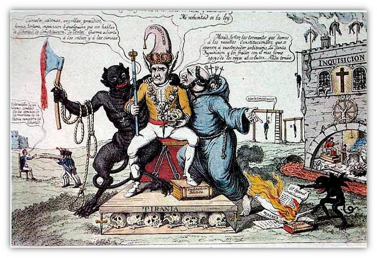 | Keywords: Tiranía circa 1820.jpg en Spanish-language cartoon Tiranía Tyranny Superstition sits on the throne advised by a priest and a devil A lithograph from this cartoon was published in El Iris in 1826 1820 http //alancaricartones blogspot ca/2011/08/retratando-mi-mexico html Anon PD-old-auto Mexico 1820 Uploaded with UploadWizard El Iris |