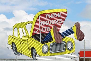 Keywords: tirau new zealand metal sign corrugated art wavy painting