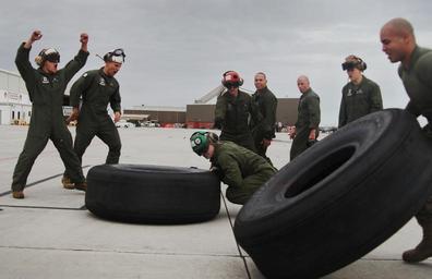 | Keywords: Tire Training (6789201705).jpg Aviation Marines with Marine Attack Squadron 231 wearing flightsuits and Marine Tactical Electronic Warfare Squadron 4 wearing Marine Corps Utilities flip the KC-130J tires in the last stretch of the Feats of Strength competition on the Marine Corps Air Station Cherry Point flight line Jan 23 Attack Squadron 231 fliers of the AV-8B Harrier began doing the competition as a squadron in October 2011 and it became so successful they decided to make it a bimonthly event U S Marine Corps photo by Lance Cpl Glen E Santy https //www flickr com/photos/marine_corps/6789201705/ Tire Training 2012-01-23 15 25 https //www flickr com/people/40927340 N03 Marines from Arlington VA United States PD-USGov United States Marine Corps Official Page https //flickr com/photos/40927340 N03/6789201705 2016-09-03 23 50 50 United States Government Work Taken with Canon EOS 5D Mark II Uncategorized 2016 November 1 |