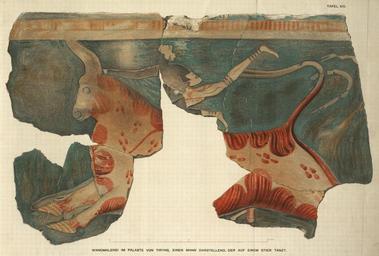 | Keywords: Tiryns Tafel XIII.jpg  de Wandmalerei im Palaste von Tiryns einen Mann darstellend der auf einem Stier tanzt http //digi ub uni-heidelberg de/diglit/schliemann1886/0571 digi ub uni-heidelberg de Heinrich Schliemann 6 January 1822 “ 26 December 1890 Before 1890 PD-old Heinrich Schliemann Frescoes from Tiryns |