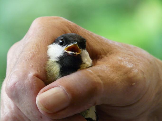 Keywords: tit parus major hand keep caught detention breathe get air fear panic surprised bird animal