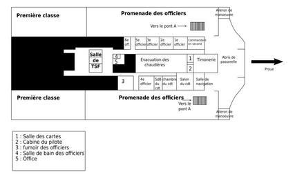| Keywords: Titanic's bridge (french).svg en Plan of the Titanic's bridge Notes are in french fr Plan de la passerelle de navigation du Titanic et des quartiers des officiers File Titanic's bridge french jpg LittleTony87 vectorised by Lilyu 9 novembre 2009 original image upload date 31/10/2009 Public domain File Titanic's bridge french jpg LittleTony87 Titanic plans and diagrams Images by Lilyu | ||||