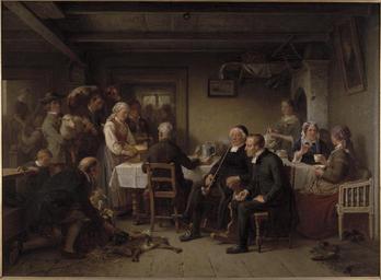 Keywords: Tithe Collection in SkÃ¥ne (Bengt Nordenberg) - Nationalmuseum - 18002.tif Artwork Creator Bengt Nordenberg Tithe Collection in SkÃ¥ne The painting of this tithes meeting in southern Sweden was admired by Nordenberg ™s contemporaries as a picture from a distant prosperous past Tithes were taxes paid to the church amounting to one-tenth of the harvest He belonged to the Düsseldorf school of painting which was characterised by dramatic images of nature and romanticised history painting But Nordenberg also made many study tours in Sweden collecting material to ensure a correct depiction of the peasantry MÃ¥lningen beundrades av sin samtid som en skildring frÃ¥n en svunnen välmÃ¥ende tid Tionde var den skatt som uppbars av kyrkan och som motsvarade en tiondel av jordbrukets produktion Nordenberg tillhörde Düsseldorfskolan som kännetecknades av dramatiserade naturskildringar och romantiskt historiemÃ¥leri Men Nordenberg företog ocksÃ¥ mÃ¥nga studieresor i Sverige och samlade material för att kunna göra korrekta avbilningar av allmogemiljöer header The painting of this tithes meeting in southern Sweden was admired by Nordenberg ™s contemporaries as a picture from a distant prosperous past Tithes were taxes paid to the church amounting to one-tenth of the harvest He belonged to the Düsseldorf school of painting which was characterised by dramatic images of nature and romanticised history painting But Nordenberg also made many study tours in Sweden collecting material to ensure a correct depiction of the peasantry MÃ¥lningen beundrades av sin samtid som en skildring frÃ¥n en svunnen välmÃ¥ende tid Tionde var den skatt som uppbars av kyrkan och som motsvarade en tiondel av jordbrukets produktion Nordenberg tillhörde Düsseldorfskolan som kännetecknades av dramatiserade naturskildringar och romantiskt historiemÃ¥leri Men Nordenberg företog ocksÃ¥ mÃ¥nga studieresor i Sverige och samlade material för att kunna göra korrekta avbilningar av allmogemiljöer 1865 Olja pÃ¥ duk Size cm 123 91 Framed Size cm 162 127 13 Institution Nationalmuseum Stockholm Signerad B Nordenberg 1865 accession number 18002 NM 999 place of creation Erik Cornelius / Nationalmuseum Nationalmuseum Stockholm cooperation project Licensed-PD-Art PD-old-auto PD-Nationalmuseum_Stockholm 1902 Media contributed by Nationalmuseum Stockholm 2016-10 Paintings in the Nationalmuseum Stockholm Bengt Nordenberg |